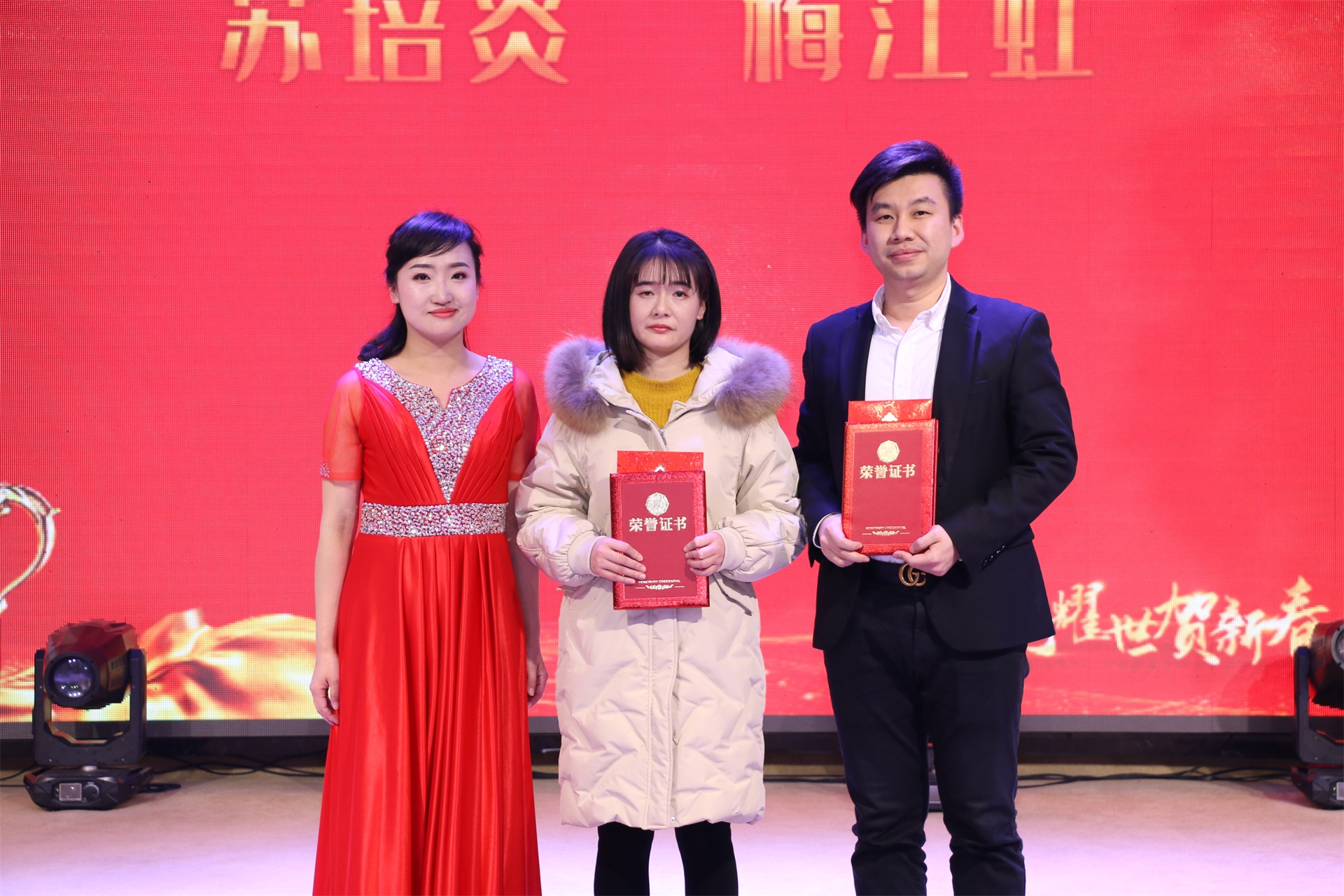 在精彩的節(jié)目進(jìn)行過程中,表彰活動也穿插進(jìn)行。東信醫(yī)藥集團(tuán)總經(jīng)理陳向先生,公司總經(jīng)理黃少偉先生、副總經(jīng)理營銷總監(jiān)李建軍先生,各職能部門的領(lǐng)導(dǎo)相繼揭曉了“東信醫(yī)藥2019年度表彰大會”的各個獎項(xiàng),并向獲得榮譽(yù)的先進(jìn)團(tuán)隊(duì)和個人頒發(fā)獎金及榮譽(yù)證書。