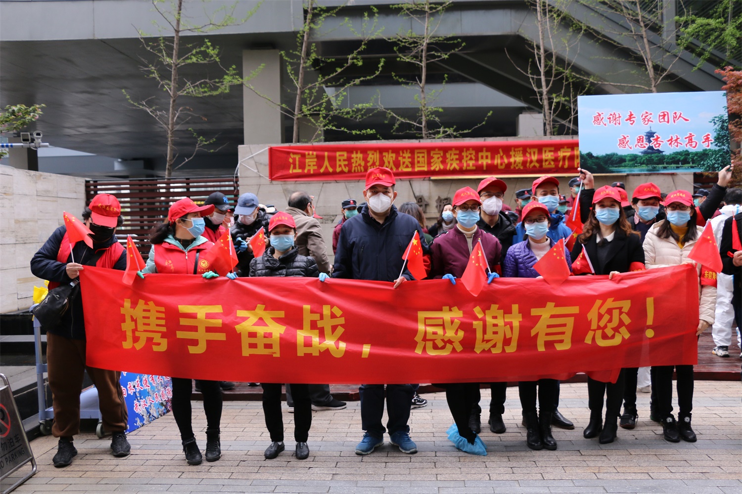 3月30日下午,湖北東信醫(yī)藥有限公司志愿者代表一行十三人應(yīng)邀參加了江岸區(qū)政府組織的河北省援漢醫(yī)療隊返程歡送儀式。江岸區(qū)有關(guān)部門的領(lǐng)導(dǎo)代表武漢人民感謝河北省第二批、第三批援漢醫(yī)療隊員的辛勤勞動和無私付出,并向他們贈送了錦旗和鮮花。