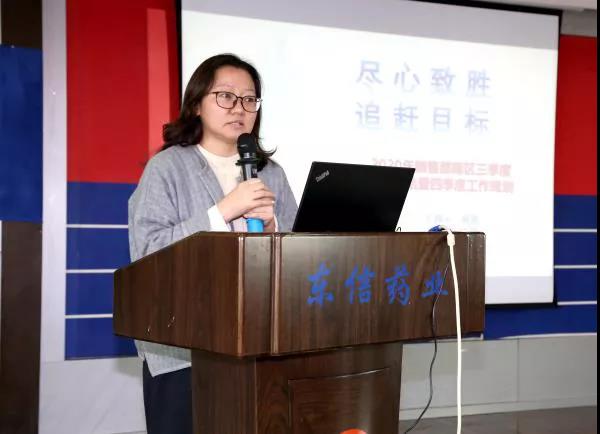 南區(qū)銷售總監(jiān)楊青女士對(duì)銷售部南區(qū)總結(jié)了一至三季度的業(yè)績(jī)達(dá)成情況和完成的各項(xiàng)工作,圍繞四季度和全年的銷售目標(biāo)進(jìn)行工作部署,對(duì)各省區(qū)的目標(biāo)分解、催銷產(chǎn)品的推廣、百日會(huì)戰(zhàn)活動(dòng)的持續(xù)跟進(jìn)、秋冬季活動(dòng)的開展等工作做了具體的安排,號(hào)召全體營(yíng)銷將士全力以赴,抓庫存管理、抓動(dòng)銷、抓團(tuán)隊(duì)建設(shè),沖刺四季度,追趕2020年公司下達(dá)的全年?duì)I銷任務(wù)。
