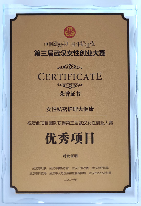 9月16日,全國婦聯(lián)和聯(lián)合國婦女署合作,在湖北省武漢市舉辦“支持女性應(yīng)對疫情及后期經(jīng)濟(jì)恢復(fù)”項(xiàng)目啟動(dòng)會(huì)暨第三屆武漢女性創(chuàng)業(yè)大賽頒獎(jiǎng)典禮,東信醫(yī)藥集團(tuán)的參賽項(xiàng)目“女性私密護(hù)理大健康”獲得“優(yōu)秀項(xiàng)目獎(jiǎng)”。