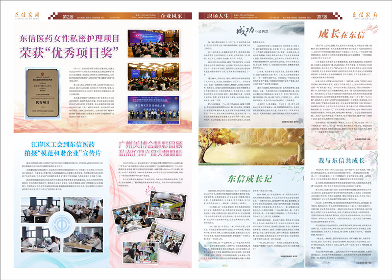有人說,東信是奇妙的,成立23年來,發(fā)展有道,生產(chǎn)經(jīng)營和精神文明雙豐收,榮獲“最受歡迎婦科用藥”,“武漢市守合同重信用企業(yè)”,企業(yè)之歌--《舞臺(tái)、家園、夢》榮獲“湖北省優(yōu)秀品牌歌曲金獎(jiǎng)” 等榮譽(yù)稱號(hào),接踵而來的榮譽(yù),東信總能讓人眼前一亮;