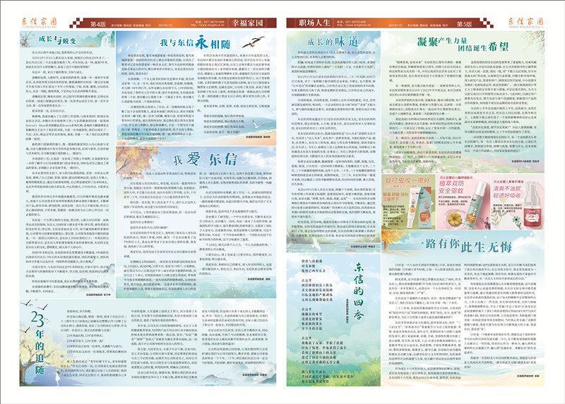 公司自成立以來,整整走過了二十三個(gè)年頭,回首過往,二十三年的風(fēng)雨坎坷、傳承跨越,讓東信從一棵小苗長成大樹,二十三年的披荊斬棘、辛勤耕耘成就了東信的今天。這些年既是公司穩(wěn)步快速發(fā)展,又是企業(yè)品牌和企業(yè)文化逐漸形成和提升的時(shí)期,也是東信人開新篇、創(chuàng)輝煌的時(shí)期。