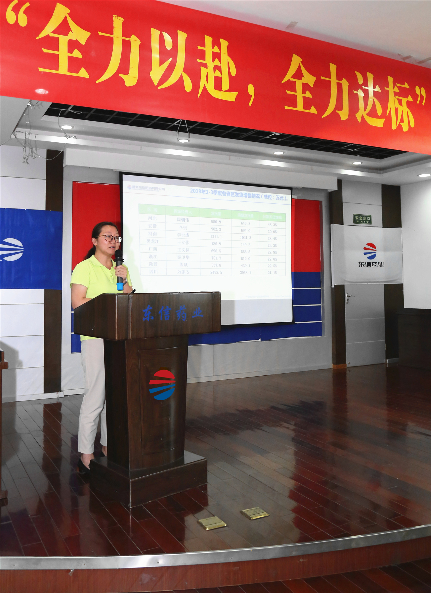 銷售總監(jiān)楊青女士代表銷售部總結(jié)了一至三季度的業(yè)績達(dá)成情況和完成的各項(xiàng)工作,圍繞四季度和全年的銷售目標(biāo)進(jìn)行工作部署,對(duì)各省區(qū)的目標(biāo)分解、催銷產(chǎn)品的推廣、百日會(huì)戰(zhàn)活動(dòng)的持續(xù)跟進(jìn)、秋冬季活動(dòng)的開展等工作做了具體的安排,號(hào)召全體營銷將士全力以赴,沖刺四季度,圓滿完成2019年公司下達(dá)的全年?duì)I銷任務(wù)。