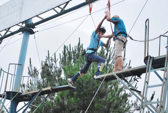 參加訓(xùn)練的64名隊員(含銷售部的3位隊員)分成無敵隊、先鋒隊、西班牙隊三個小組,展開了較量。他們經(jīng)歷了“市場迷宮”的考驗、感受了“七巧板”營銷游戲的切膚之痛、經(jīng)受了在雨中“斷壁攀巖”的挑戰(zhàn)、分享了“畢業(yè)墻”的感動。在兩天的拓展活動中,東信人吃苦耐勞、勇于拼搏的精神得到了充分地體現(xiàn)。