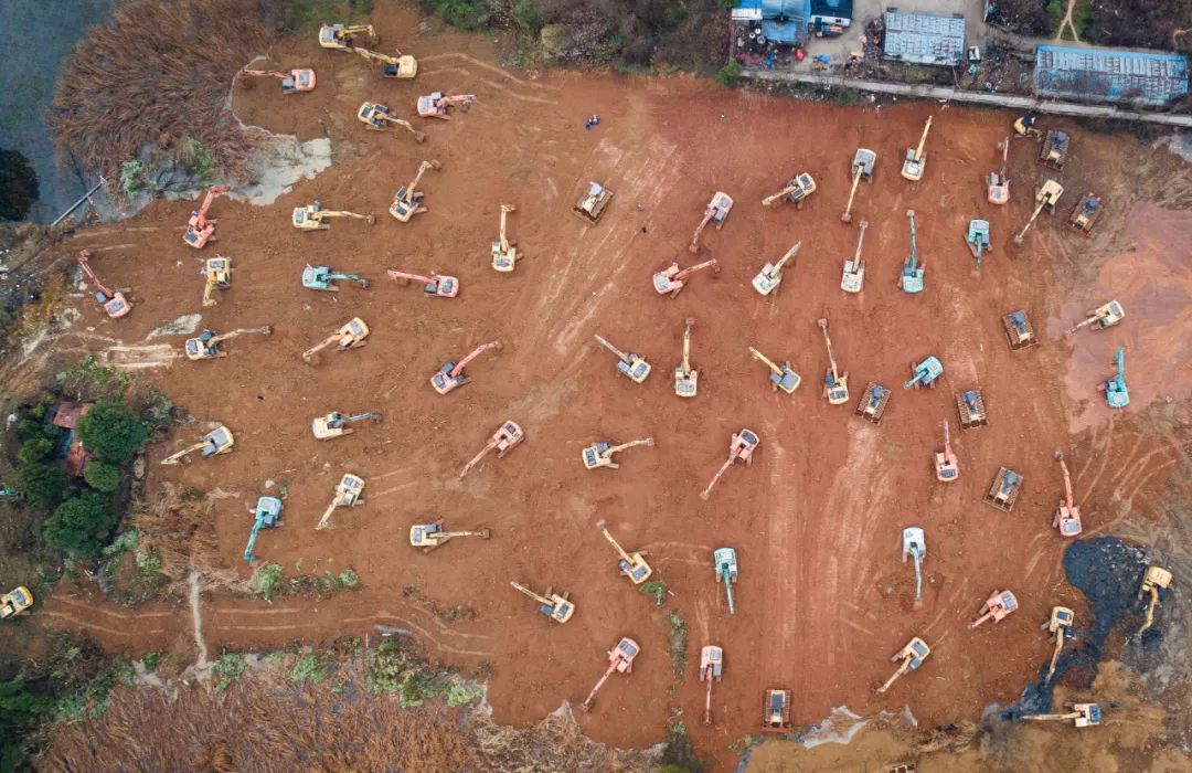 1月24日,火神山醫(yī)院開建,大型機(jī)械加緊施工。