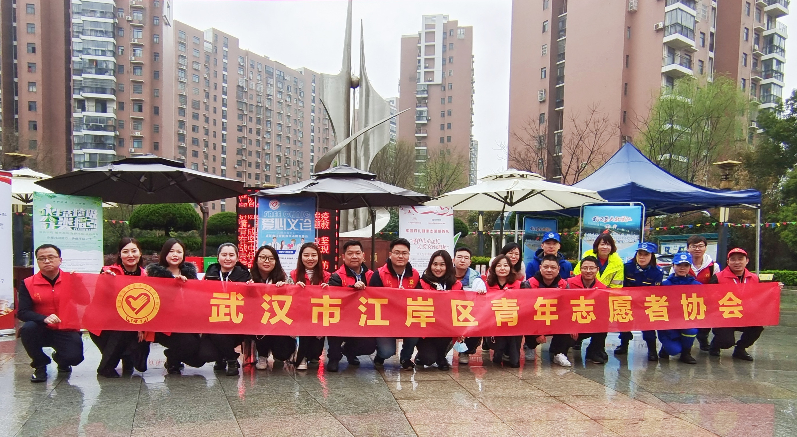 學(xué)雷鋒紀(jì)念日當(dāng)天,天空一直下著大雨,東信醫(yī)藥青年志愿服務(wù)隊(duì)的隊(duì)員們提前來(lái)到服務(wù)社區(qū),冒著大雨搭建為民服務(wù)健康咨詢展臺(tái)。
