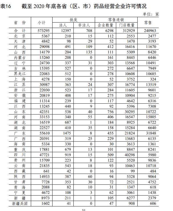 日前,國家藥品監(jiān)督管理局綜合和規(guī)劃財務(wù)司及國家藥品監(jiān)督管理局信息中心發(fā)布《藥品監(jiān)督管理統(tǒng)計年度報告(2020年)》(以下簡稱《報告》),《報告》分別對2020年藥品、醫(yī)療器械、化妝品的相關(guān)行政受理、審批、監(jiān)管等情況進(jìn)行了匯總分析,披露了包括藥店數(shù)量、執(zhí)業(yè)藥師數(shù)量等不少藥店最關(guān)心的數(shù)據(jù)。