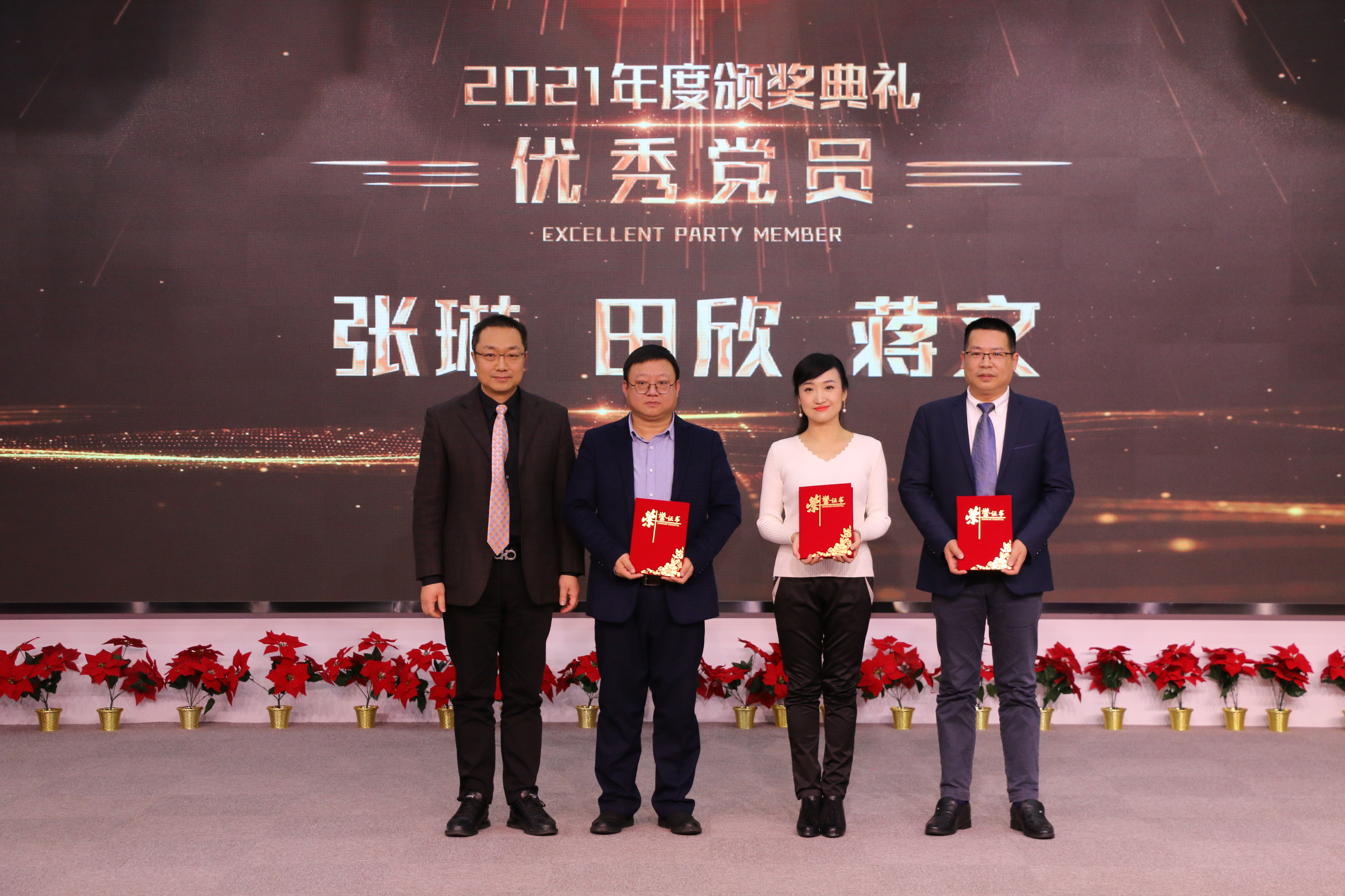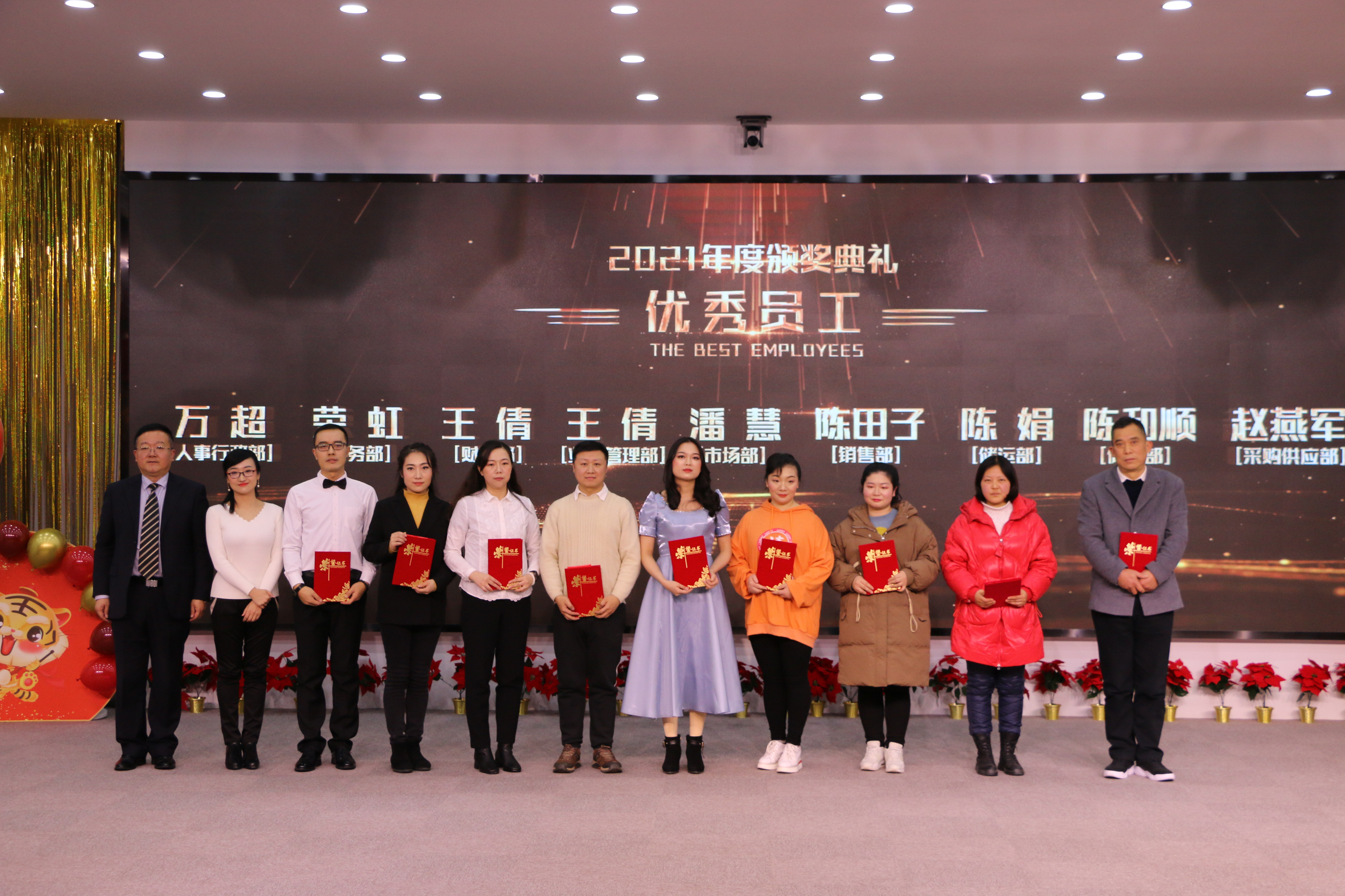 在精彩的文藝演出過程中,表彰活動(dòng)穿插進(jìn)行。東信醫(yī)藥總經(jīng)理黃少偉先生,營銷總經(jīng)理李建軍先生,黨支部書記兼副總經(jīng)理張琳女士,副總經(jīng)理?xiàng)钋嗯?/span>,以及職能部門的領(lǐng)導(dǎo)相繼揭曉了“東信醫(yī)藥2021年度表彰總結(jié)大會”的各個(gè)獎(jiǎng)項(xiàng),向獲得榮譽(yù)的先進(jìn)團(tuán)隊(duì)和個(gè)人頒發(fā)獎(jiǎng)金及榮譽(yù)證書。