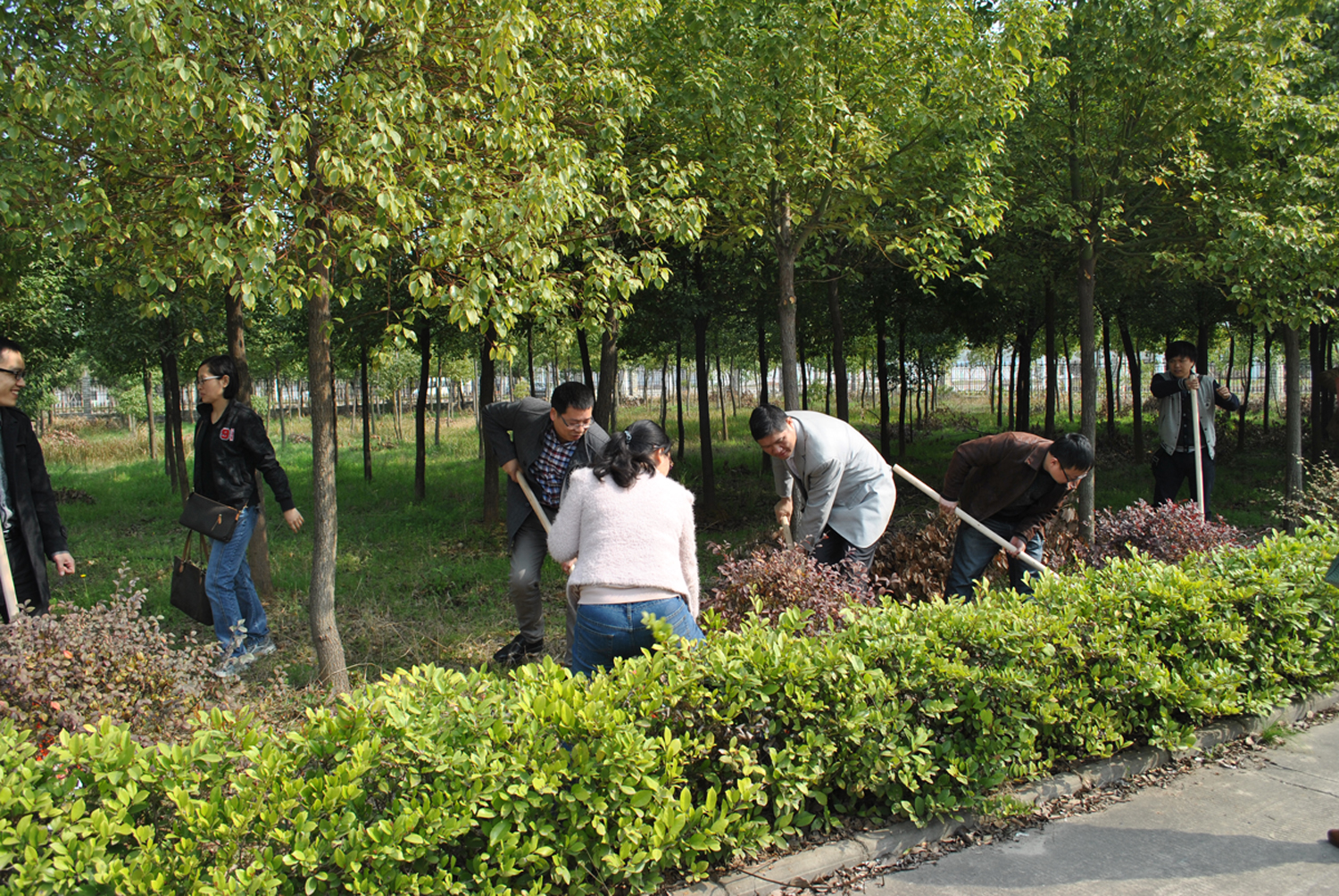 上午8:30,在黨支部書記閔超的帶領(lǐng)下,全體黨員及入黨積極分子放棄周末休息時間,攜帶勞動工具,來到位于常福新城的東信醫(yī)藥科技參加了義務(wù)勞動。當(dāng)天勞動現(xiàn)場一派繁忙,大家熱情高漲,干勁十足,揮鍬舞鈀,爭相給基地綠化帶的樹木培土、清理綠化帶垃圾、雜草,以自己的實際行動表達(dá)對黨組織和對公司的熱愛。義務(wù)勞動后,黨員及入黨積極分子還進(jìn)行了小型趣味運動會。