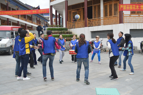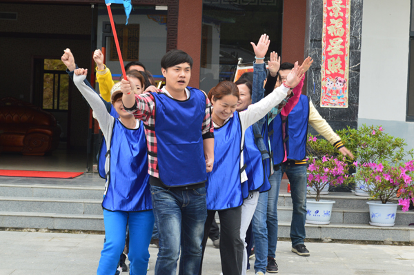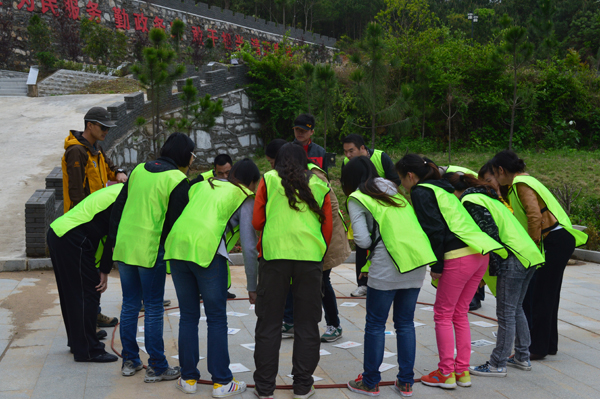“只有團隊的力量才能達成目標,創(chuàng)造奇跡!”負責此次拓展訓練的教練用這樣一句話拉開了本次活動的帷幕。教練首先通過全體參與“粘泡泡糖”活動,打破了大家之間的隔閡,建立相互幫助、相互協(xié)作的愉快氛圍。緊接著在教練的指導下,全體人員分成四個小組開展了起隊名、做隊旗、唱隊歌、研究團隊造型等訓練活動。