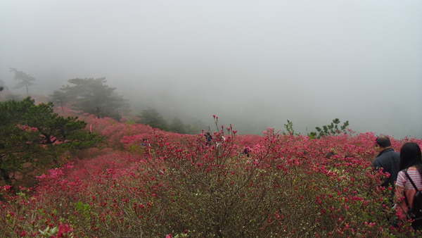 19日晚在歡快的篝火晚會中結束了一天的拓展訓練,全體調整休息后于20日清早開始了登龜峰山賞杜鵑花活動。