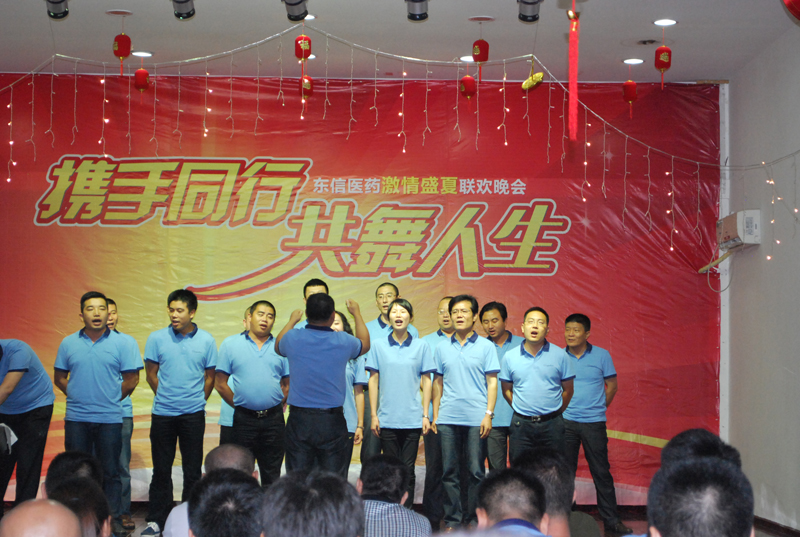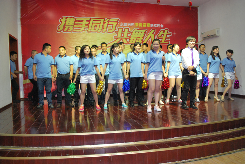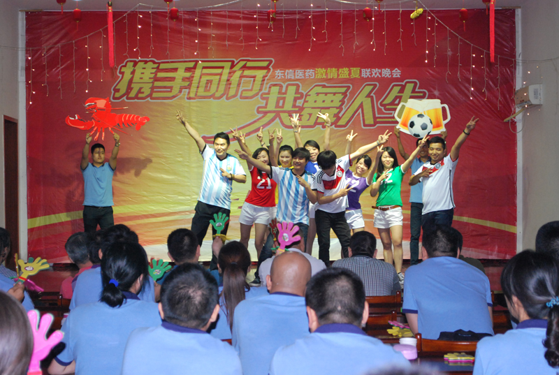 2014年7月12日,湖北東信醫(yī)藥有限公司在武漢東信醫(yī)藥科技有限責(zé)任公司會議中心舉行“攜手同行、共舞人生”激情盛夏聯(lián)歡晚會。來自全國各個省區(qū)的營銷精英和公司各職能部門的干部職工以及東信藥業(yè)、東信醫(yī)藥科技等兄弟公司的領(lǐng)導(dǎo)同事們歡聚一堂,共同慶祝東信醫(yī)藥上半年?duì)I銷團(tuán)隊(duì)學(xué)習(xí)交流大會圓滿召開,為贏取2014年全年銷售的勝利振奮士氣。