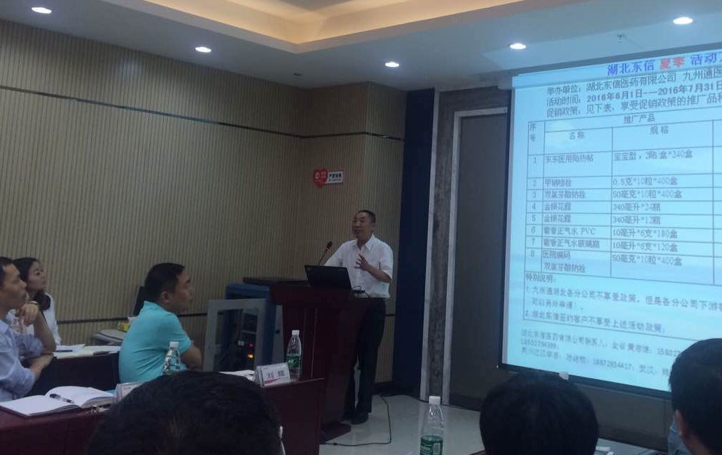 在懇談會上,東信醫(yī)藥銷售部門負責品牌和銷售的相關(guān)人員回顧了與九州通醫(yī)藥集團的合作歷程,介紹了東信醫(yī)藥集團近幾年的發(fā)展概況,并對東信醫(yī)藥集團的重點產(chǎn)品和夏季促銷活動方案進行了詳細的講解。