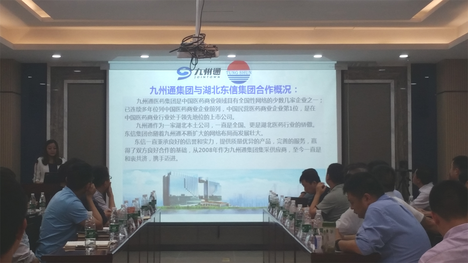 2016年6月4日下午,湖北東信醫(yī)藥有限公司副總經(jīng)理李建軍及銷售部、湖北省區(qū)的業(yè)務(wù)骨干一行7人專程前往九州通醫(yī)藥集團總部,出席東信醫(yī)藥與九州通湖北事業(yè)部聯(lián)合舉辦的戰(zhàn)略合作業(yè)務(wù)懇談會。九州通醫(yī)藥集團湖北事業(yè)部總經(jīng)理劉義常及湖北事業(yè)部湖北醫(yī)藥有限公司總經(jīng)理劉輝、湖南九州通總經(jīng)理徐偉明、湖北事業(yè)部7家子公司總經(jīng)理、各業(yè)務(wù)部門大區(qū)經(jīng)理、高級經(jīng)理、綜合管理部門經(jīng)理及總經(jīng)辦全體人員共70余人參加了本次業(yè)務(wù)懇談會。