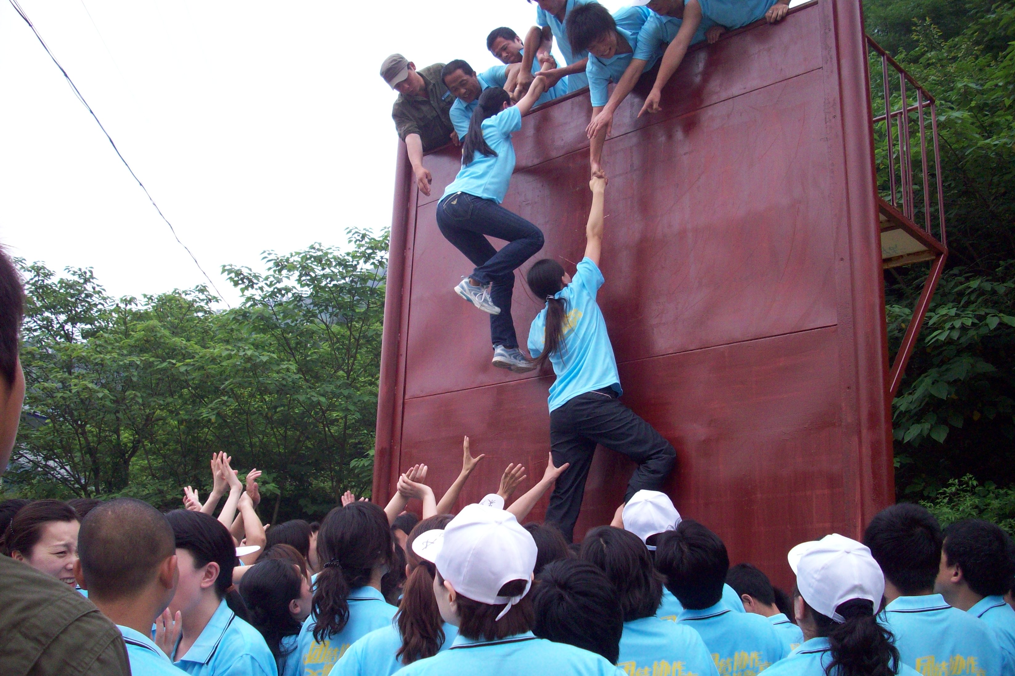 隊(duì)員們團(tuán)結(jié)協(xié)作翻越畢業(yè)墻